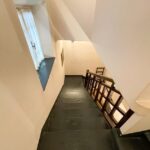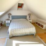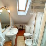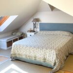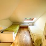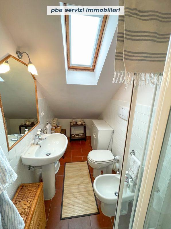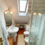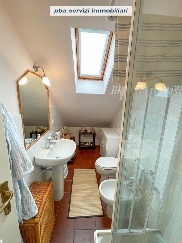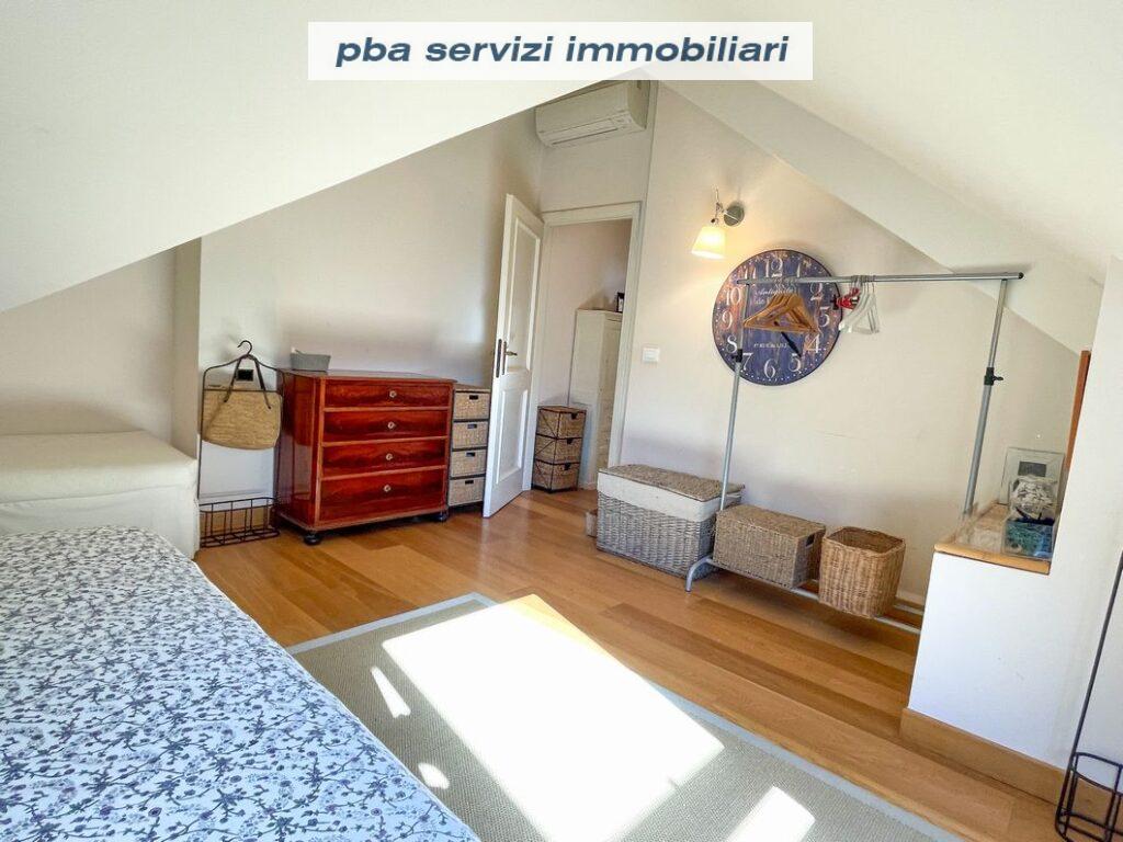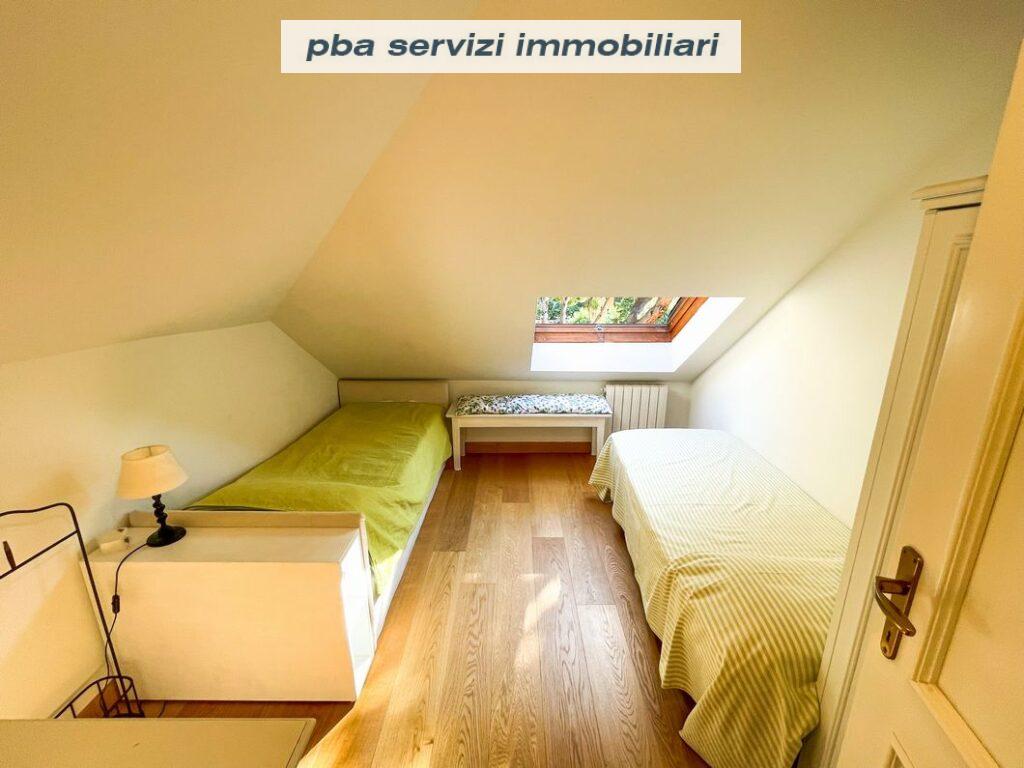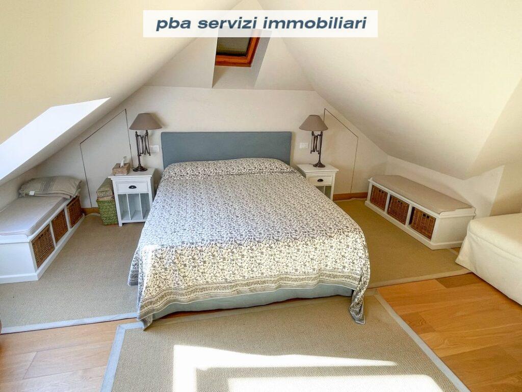 Una scala conduce al piano superiore mansardato che ospita una camera matrimoniale, una camera con due letti singoli ed il secondo bagno.